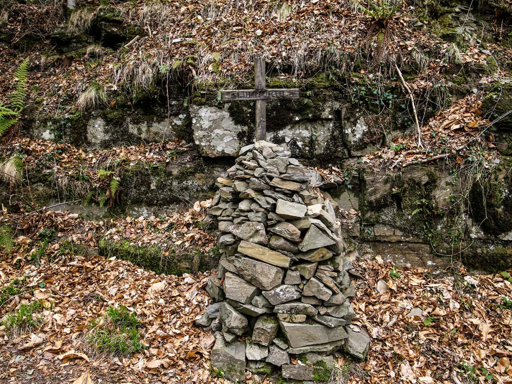 Nel secondo caso, si segue il sentiero di crinale 00 verso nord fino alla Croce di Cardeto, riconoscibile per la caratteristica croce di legno. Da qui prendiamo in sentiero 15 che è inizialmente su una strada forestale. Raggiungiamo le Case di Sant’Antonio che sono un gruppo di case di cui una adibita a bivacco con posti letti e camino. In origine erano abitate e i resti dei terrazzamenti adiacenti prima coltivati ne sono il segno. Il sentiero 15 scende ora per la strada forestale che si lascia in corrispondenza dell’attraversamento del Borro di Sant’Antonio dove voltiamo a destra. Il sentiero segue la stretta valle del Borro di Sant’Antonio. Questo percorso era importante nel passato per il trasporto a valle del carbone fatto nelle numerose carbonaie della zona. Il alcuni punti sono visibili le prese dell’acquedotto di Reggello. Con numerosi caratteristici attraversamenti del torrente su ponticelli di legno fra cascatelle, pozze e giochi d’acqua con visuali sempre suggestive, raggiungiamo un bivio con un sentiero non segnato sulla sinistra che porta alla confluenza della valle con quelle del Resco. Voltiamo e con un saliscendi, raggiungiamo un luogo singolare con una suggestiva cascata chiamata Pisciolo di Macereto. La cascata si trova sul Resco ma è nei pressi della confluenza con il Borro di Sant’Antonio. Attraversiamo il Resco con un ultimo ponticello di legno e con una breve risalita, raggiungiamo la strada a fondo naturale del sentiero 16 dove siamo passati all’andata. Voltiamo a destra in discesa e ritorniamo da dove siamo partiti.