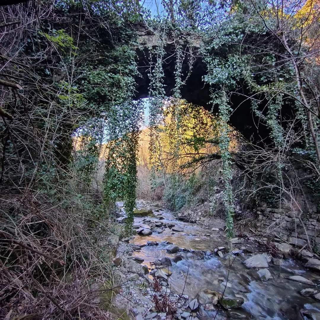 Superato il mulino si continua a risalire il torrente e con una breve deviazione, lasciando a sinistra il sentiero principale, si può scendere verso l’antico PONTE IN PIETRA DI PETROIO, e raggiungere l'antico MULINO DI PETROIO o della Pigna, appartenuto alla famiglia di Corso Donati, protagonista dello scontro tra Guelfi Neri e Bianchi che coinvolse anche Dante Alighieri. A monte del mulino il corso d'acqua si divide in più rami, formando nei periodi piovosi delle belle cascate su roccia.