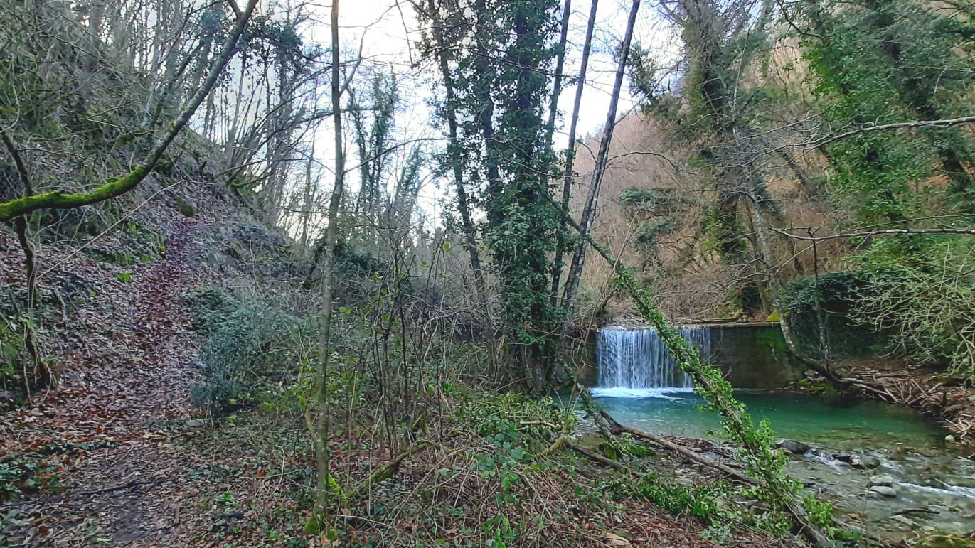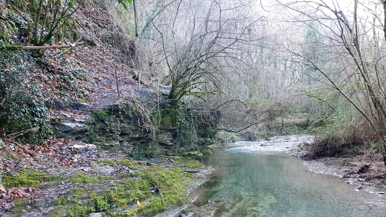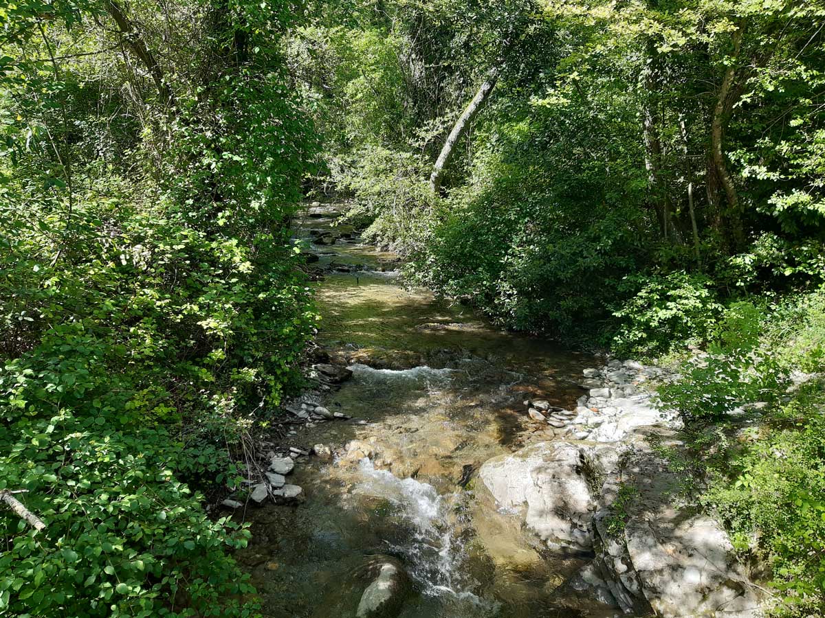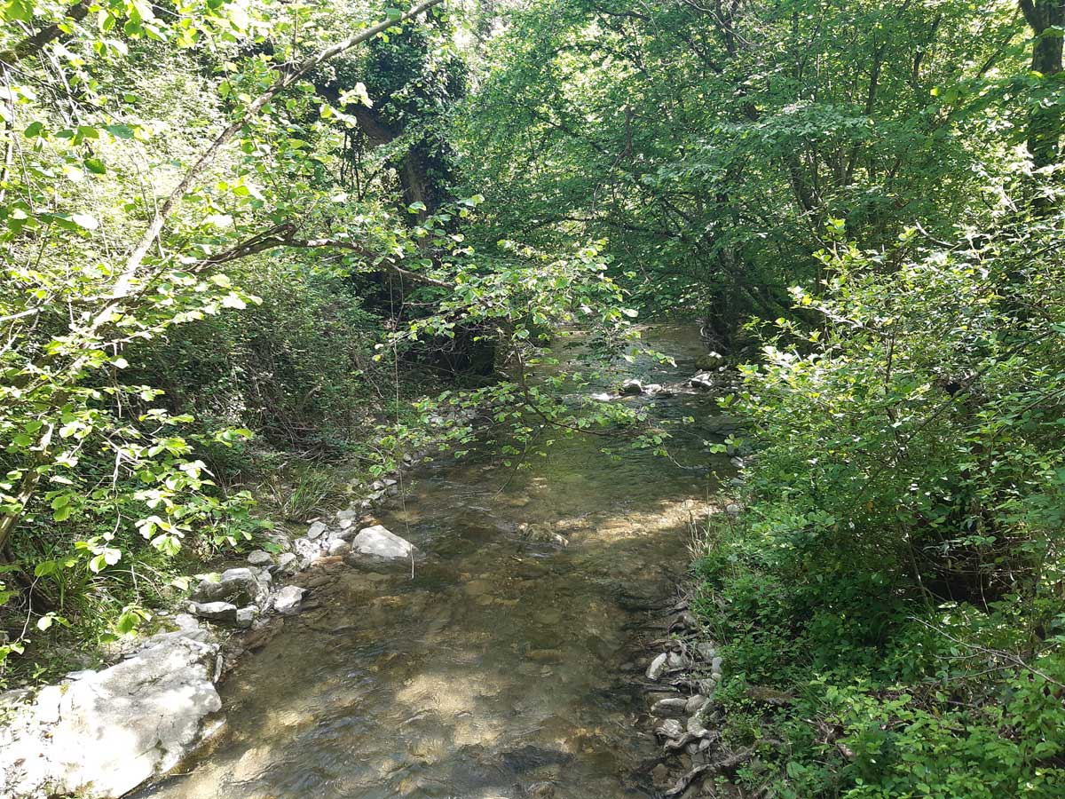 L’itinerario lungo la sponda meridionale del fiume continua poi in un sentiero, sempre più stretto, che si inoltra in un ambiente naturale particolare, soprattutto per la presenza del castagno che scende frequentemente fin nei pressi del torrente.