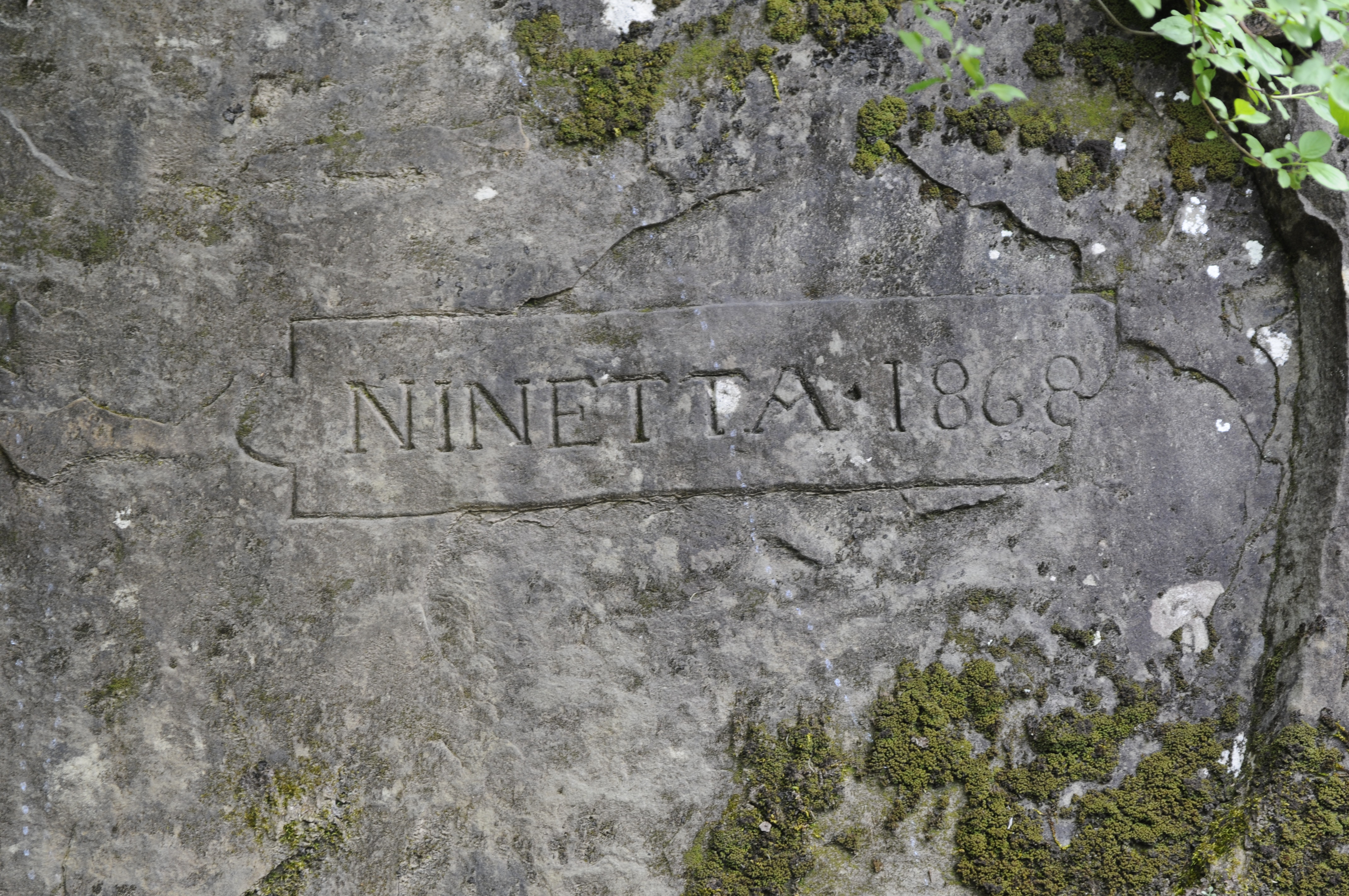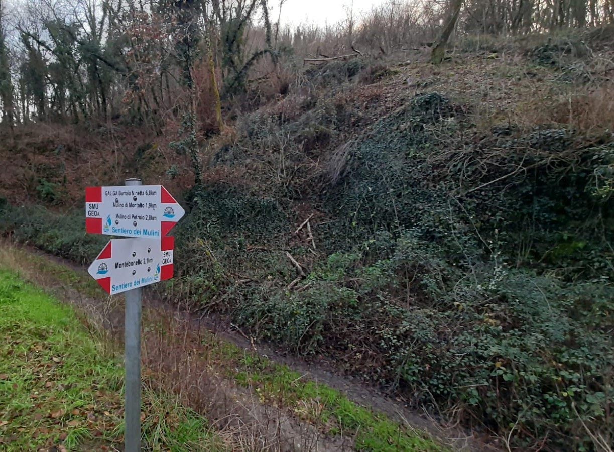Una volta tornati al ponte il sentiero sale ripidamente verso Sud, passando da Montalto Bianco e raggiungendo la zona denominata Le Colline, dove si trova la’ omonima Cascina. Un breve sentiero collega la Cascina delle Colline alla BURRAIA NINETTA, adiacente ad una sorgente, e che riporta sulla pietra l’iscrizione Ninetta e una datazione: 1868.