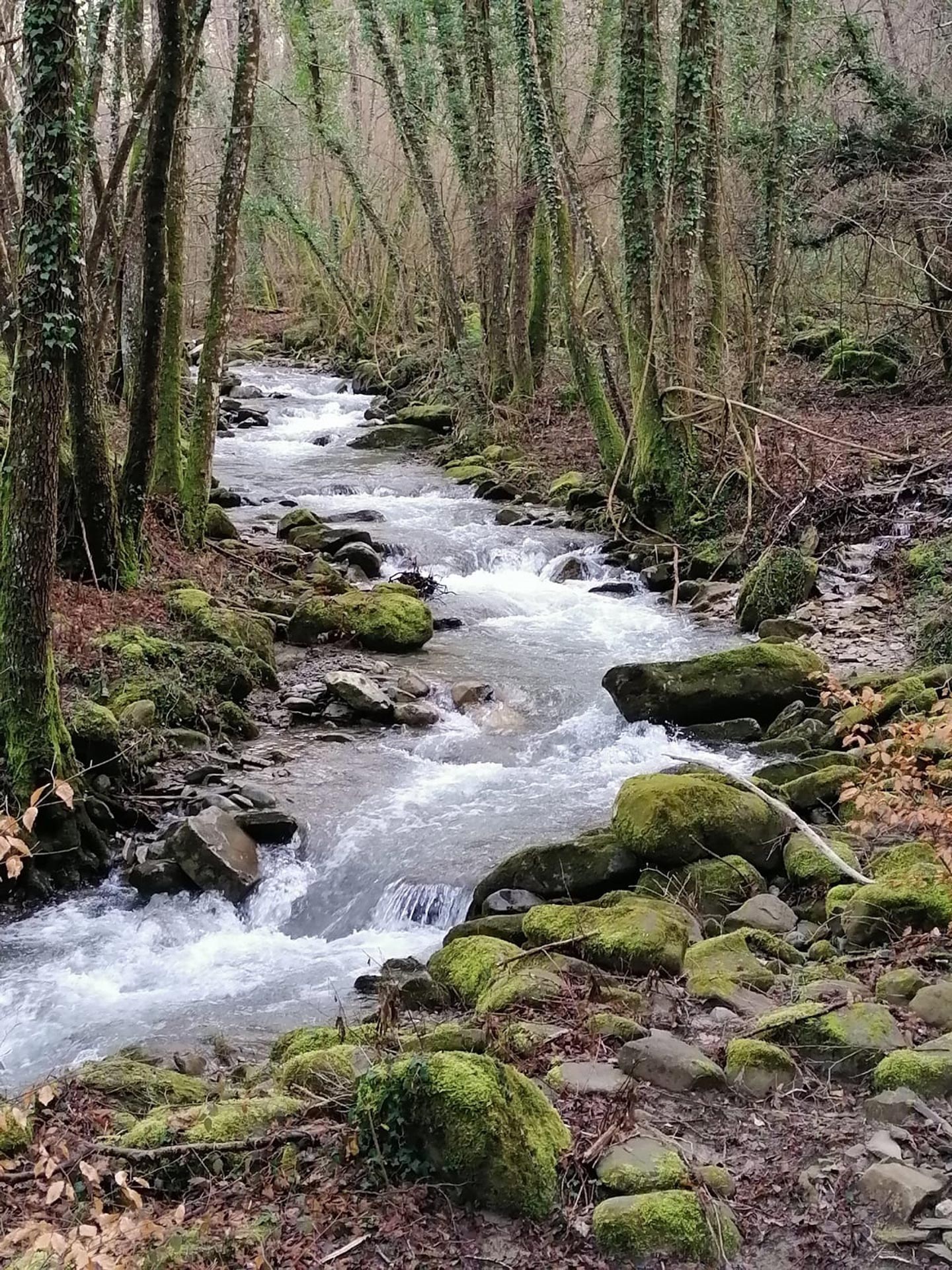 Dopo aver lasciato l’auto all’ingresso del borgo, oltrepassiamo lo stesso e, seguendo le indicazioni de “I cammini dell’acqua” scendiamo leggermente in direzione sud-ovest seguendo una vecchia mulattiera, immersa nella lussureggiante vegetazione appenninica, al confine del Parco Nazionale delle Foreste Casentinesi – Monte Falterona – Campigna. Dopo circa 200 metri dalla partenza ci troviamo di fronte a un bivio: prendiamo la viottola che scende decisa a destra lungo il “Sentiero dei fuochi e dell’acqua”. Lungo la facile discesa incontriamo una bella radura da cui la vista spazia sul crinale caratterizzato da imponenti affioramenti geologici, fra Le Balze (833 mt s.l.m.) a sinistra e il poggio degli Orticari (1.099 mt s.l.m.) a destra, per poi incontrare una particolare risorgiva di acqua e gas naturale. Le emissioni di metano presenti nell’Appennino, se accese, possono essere visibili come fuochi oscillanti sul terreno e sono state oggetto di tentativi di sfruttamento economico a partire dalla seconda metà del XIX secolo. Il punto di emissione visibile lungo il percorso ha origine dalle trivellazioni degli anni trenta del secolo scorso. Lungo il sentiero, ormai arrivato nel fondovalle, troviamo la bella cascata del torrente che scende dalla località Castellina-Cento Fonti. Arriviamo quindi al torrente Godenzo, le cui fresche acque scendono dal vicino monte Falterona. Interessante pensare che il fiume Arno ha le sue sorgenti dall’altra parte della montagna: le acque del torrente raggiungeranno le loro parenti finendo prima in Sieve a Dicomano, per poi gettarsi nel fiume principe a Pontassieve.