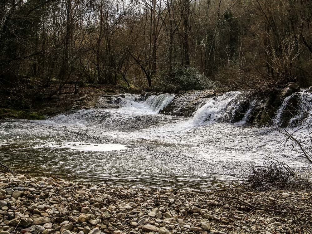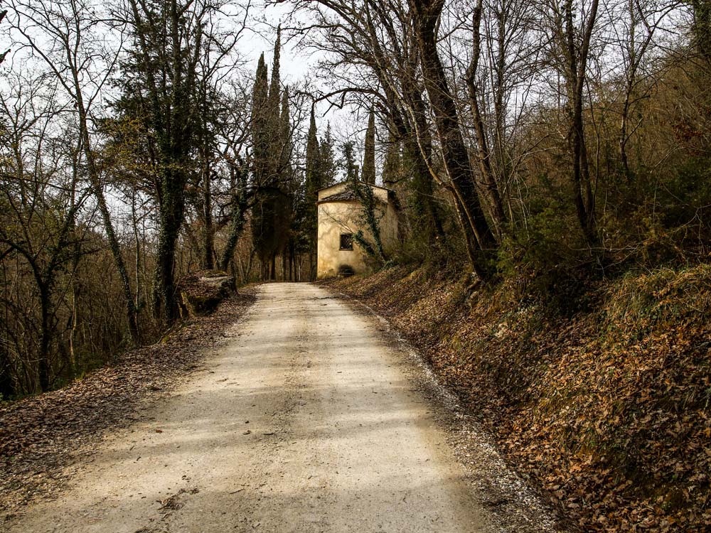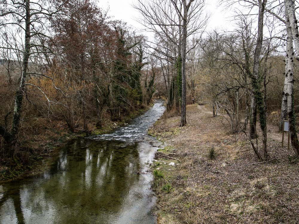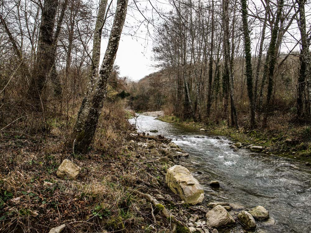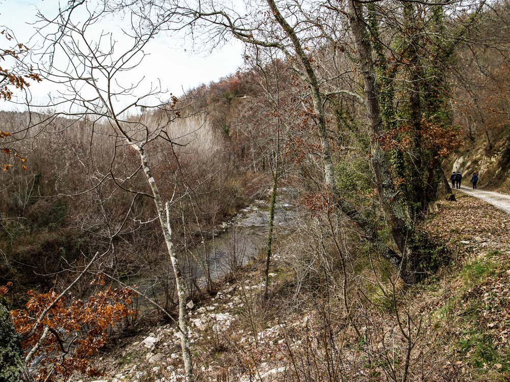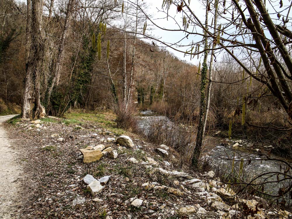 Il percorso si svolge sulla strada che costeggia il fiume seguendolo lungamente tra boschetti e radure fino nei pressi del vecchio mulino di Patrazzo ora trasformato in abitazione.